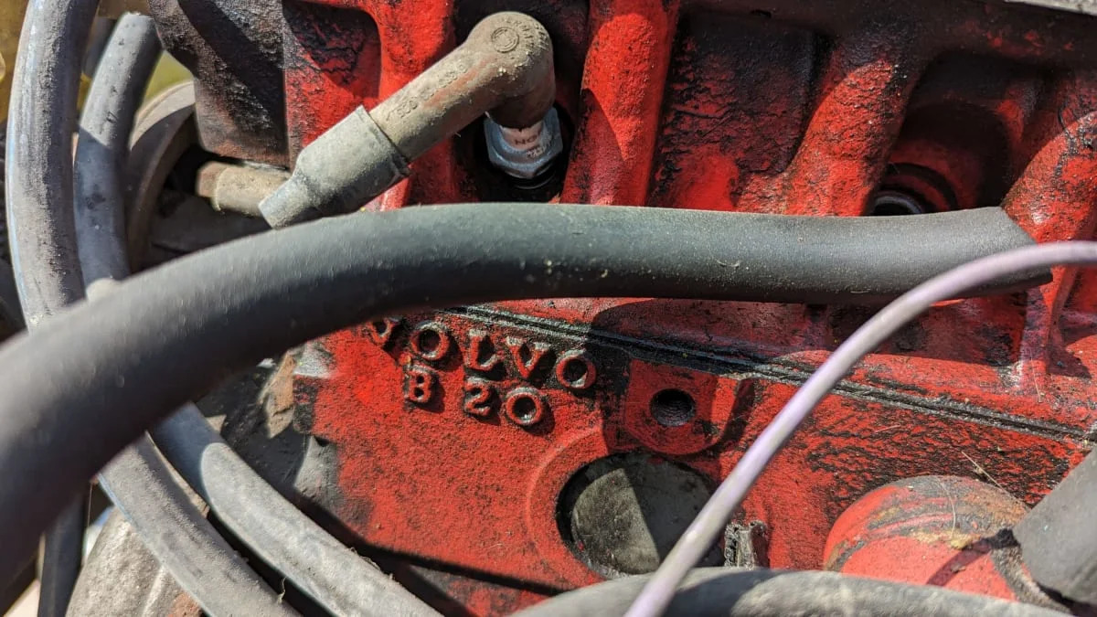 This engine was known as the B20F. First-year Volvo 240s got the B20F as well, before moving up to the SOHC “Red Block” engine for 1976.