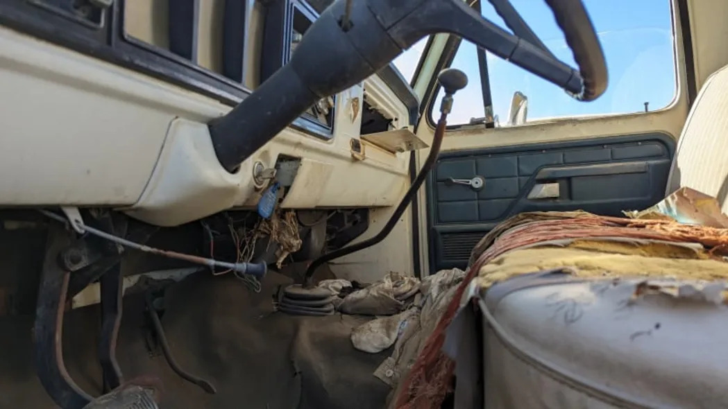 Judging from the decayed snow tires and ample rodent nesting material, it appears that this truck sat outdoors for decades before coming to this place.