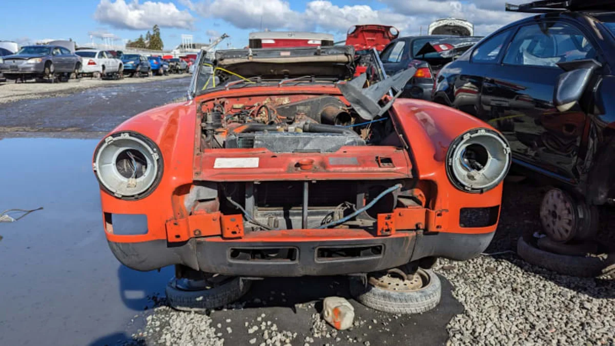 During the middle 1970s, British Leyland offered car shoppers in North America four different two-seat convertible sports cars: the Triumph TR6, the Triumph Spitfire, the MGB and the MG Midget (the convertible version of the Triumph TR7 didn’t go on sale here until the 1979 model year). Of those four, the cheapest was always the Midget, and there was a time when those affordable, fun Midgets roamed all over the highways of California. Today’s Junkyard Gem is one of those cars, found in a San Francisco Bay Area self-service boneyard a couple of months ago.