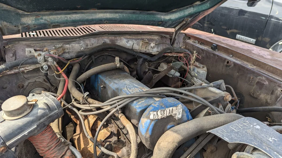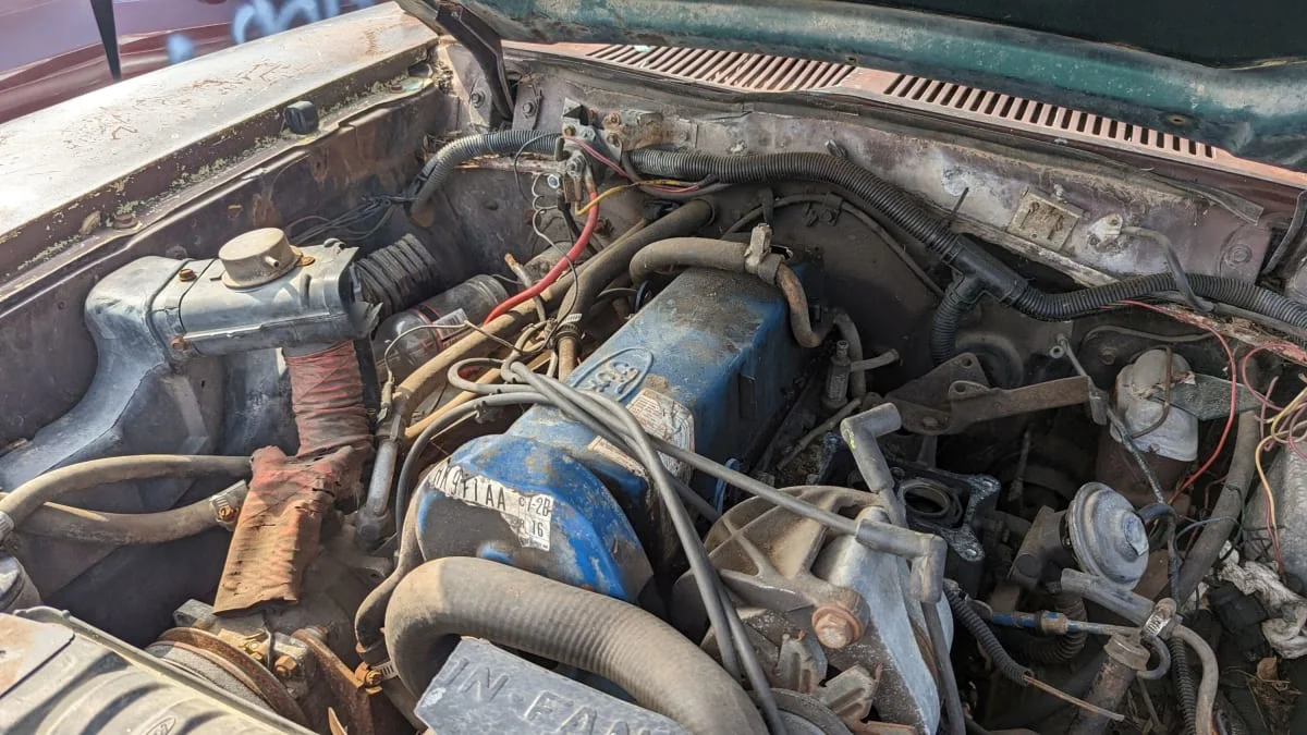 This car began life with a 2.3 rated at 89 horsepower and 120 pound-feet. If no swaps occurred during its life, that’s what we’re looking at here.
