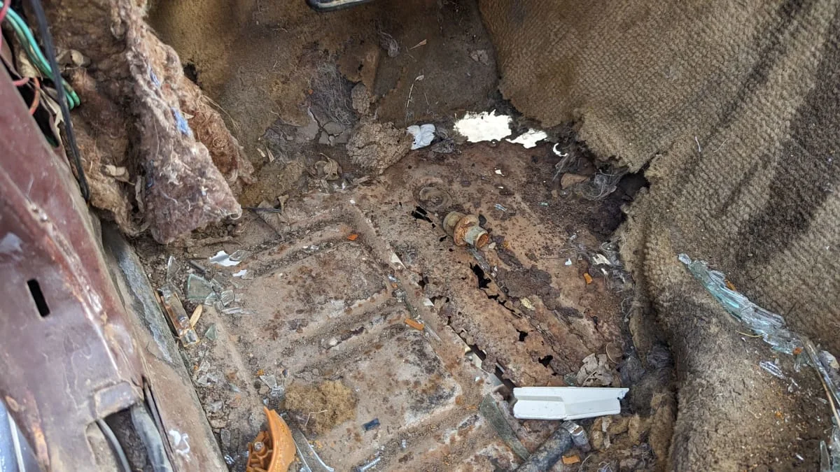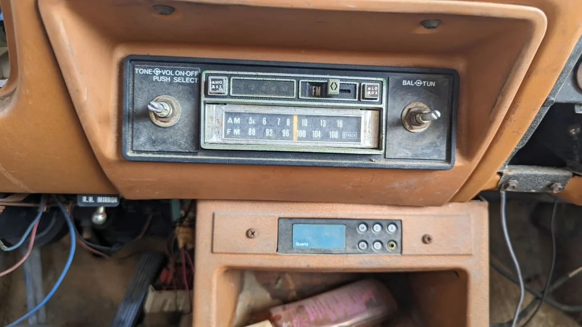 This one has a late-1970s-vintage aftermarket AM/FM/8-track player still in the dash.