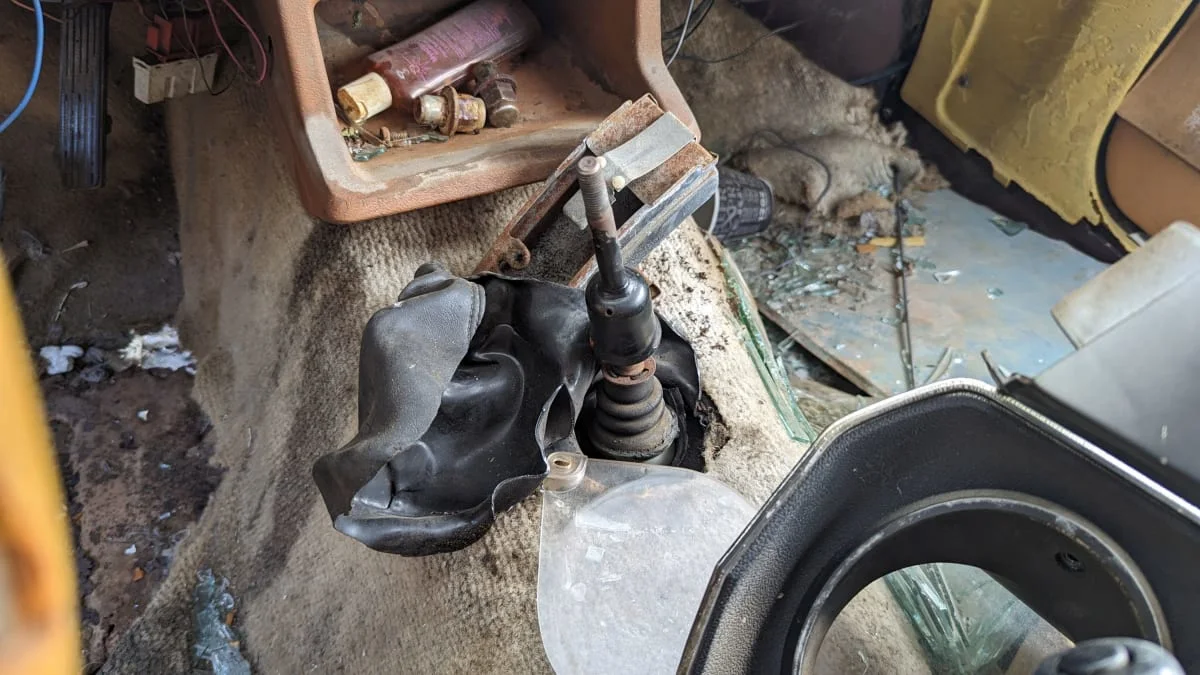 Only two transmissions were ever offered by the factory in new Pintos: a four-speed manual and a three-speed automatic. This car has the four-on-the-floor.