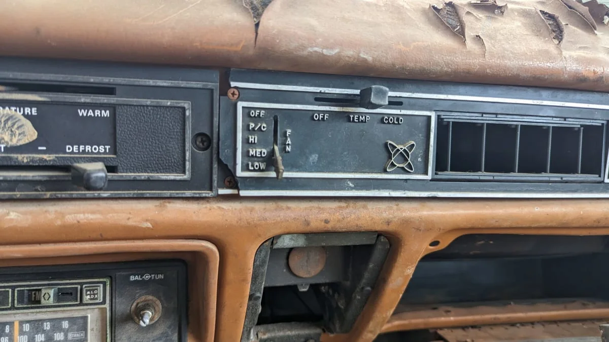 It also appears to have an aftermarket or dealer-installed air-conditioning rig. Can anyone tell us what the “P/C” fan setting is for?