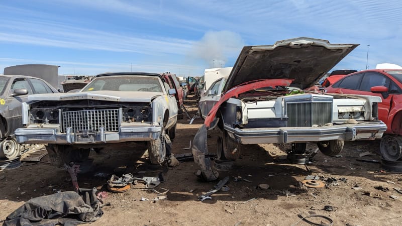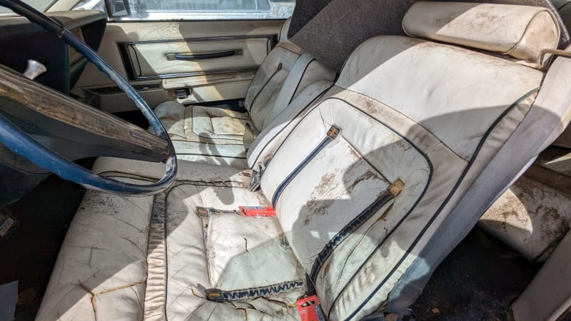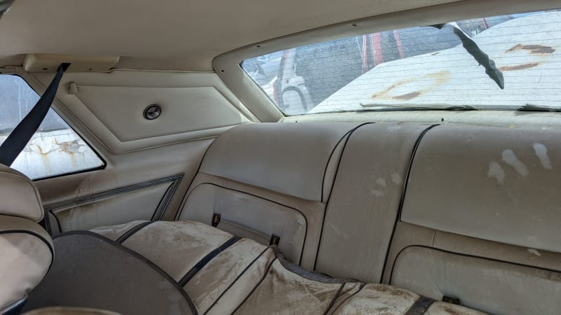 The design houses that worked their magic on these Mark Vs were Givenchy, Pucci, Cartier and Bill Blass. Each had a distinctive color scheme and mob-boss-grade interior. The Pucci cars were the rarest, with only 763 built during the 1977-1979 model years whereas 6,720 Bill Blass Mark Vs were built during that period. Today’s Junkyard Gem is the second 1979 Bill Blass Mark V I’ve found in this very junkyard; the previous find happened back in 2015.