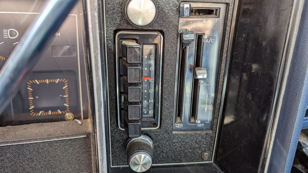 Every 1980 Citation model except the non-Club coupe came with an AM radio as base equipment, which was most unusual for a cheap compact at a time when even a scratchy, single-speaker AM radio added hundreds of bucks to the out-the-door price. This car has air conditioning, which tacked on $566 to the price (around $2,166 today). It must have been a real headache to install an aftermarket deck in that vertical radio location.