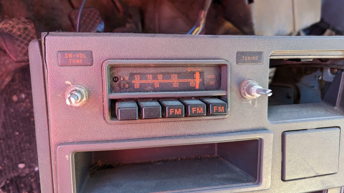 In 1981, even a single-speaker AM radio added quite a bit to the cost of an economy car. This one has a luxurious Clarion AM/FM radio, which may have been a dealer option.