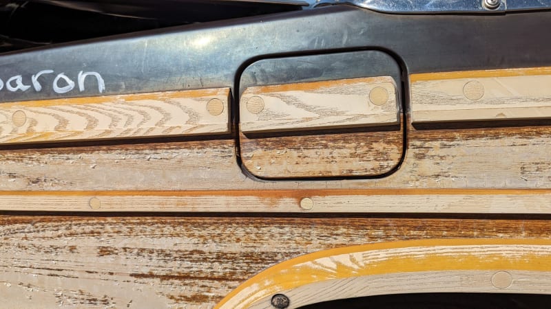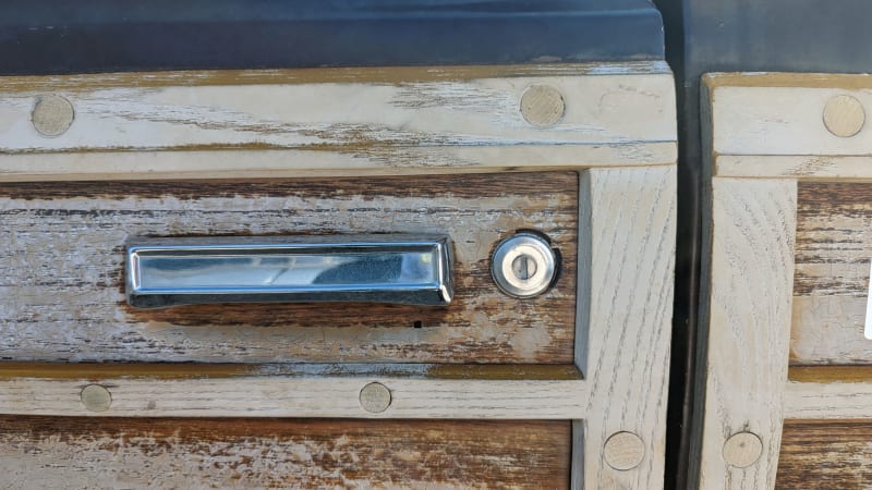 The paneling on this car is plastic, but it was more convincing (when new) than most of the fake wood found on Detroit cars of the era.