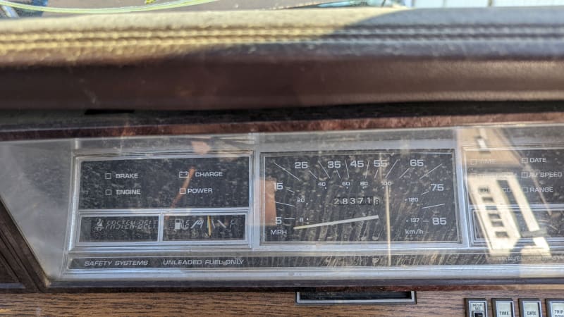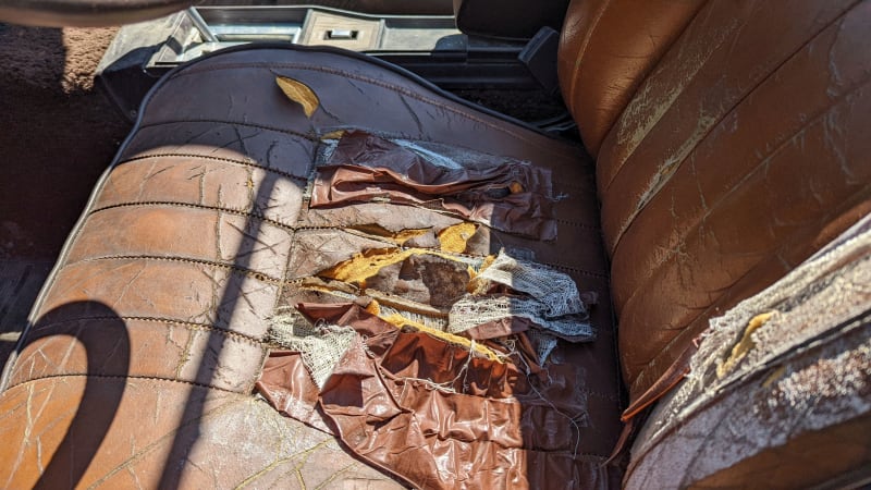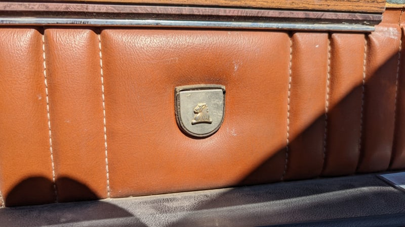 Chrysler offered Mark Cross leather in many of its cars throughout the 1980s and into the 1990s. The once-glorious two-tone hides in this car have been thoroughly ravaged by the High Plains sun by now.