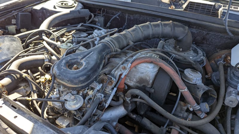 The base engine in the ordinary 1983 LeBaron was Chrysler 2.2-liter straight-four rated at 94 horsepower and 117 pound-feet. If you got the Mark Cross package, however, your LeBaron got this 2.6-liter Mitsubishi Astron engine; it produced just 93 horses but offered a more useful 132 pound-feet. For a brief period, “HEMI 2.6” badges were applied to some early K-Cars with this engine (the Astron has hemispherical combustion chambers).