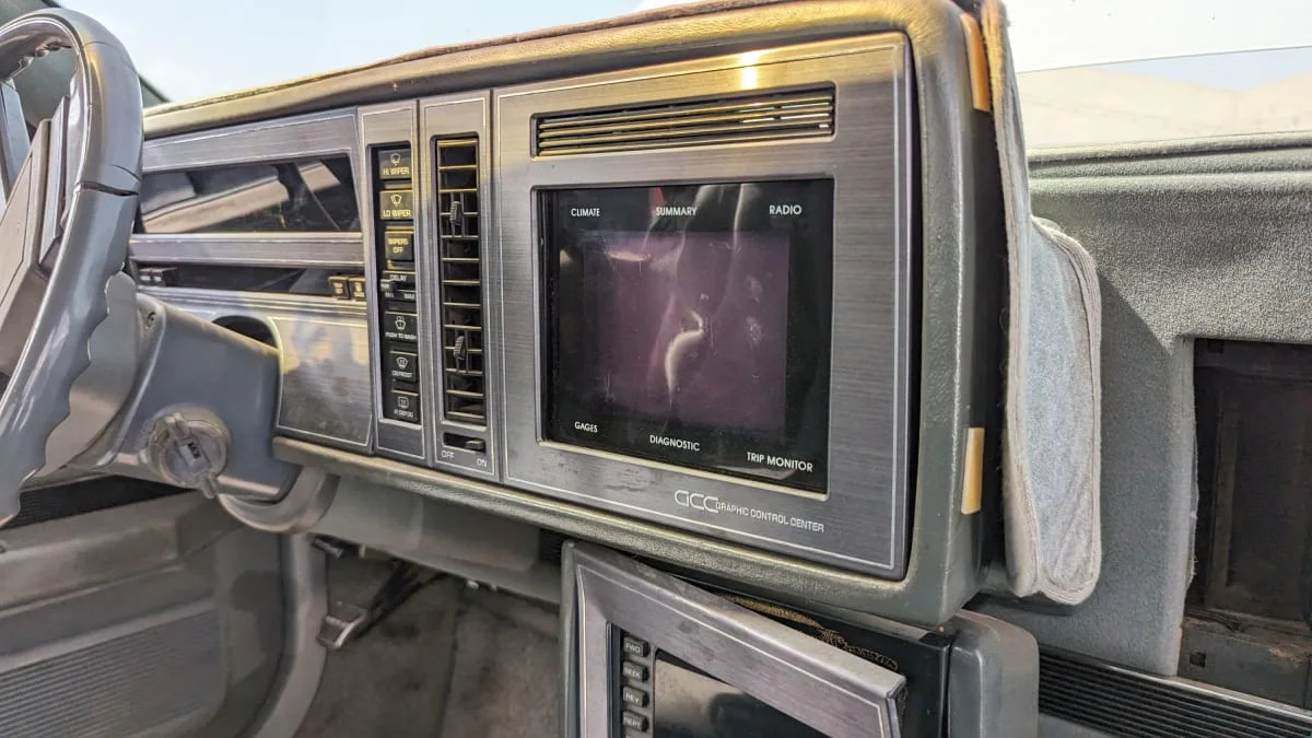 What makes this car such a fascinating bit of automotive history is this dash-mounted touchscreen interface, known as the Graphic Control Center. The 1986 Riviera was the first GM vehicle to get the GCC, which means it was the first production car in history with a factory-installed touchscreen display. This system became available in the Buick Reatta and the Oldsmobile Toronado a few years later.
