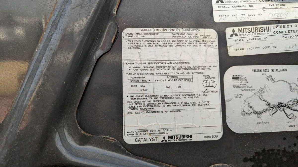 The emissions sticker tells us that this is a California-market car rather than a “49-state” version.
