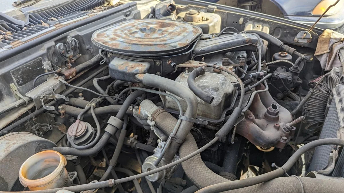 The odometer shows just a bit over 50,000 miles, which likely indicates either a broken speedometer cable or a car that stopped being driven decades ago and sat in a driveway until the Pick-n-Pull tow truck finally came for it.
