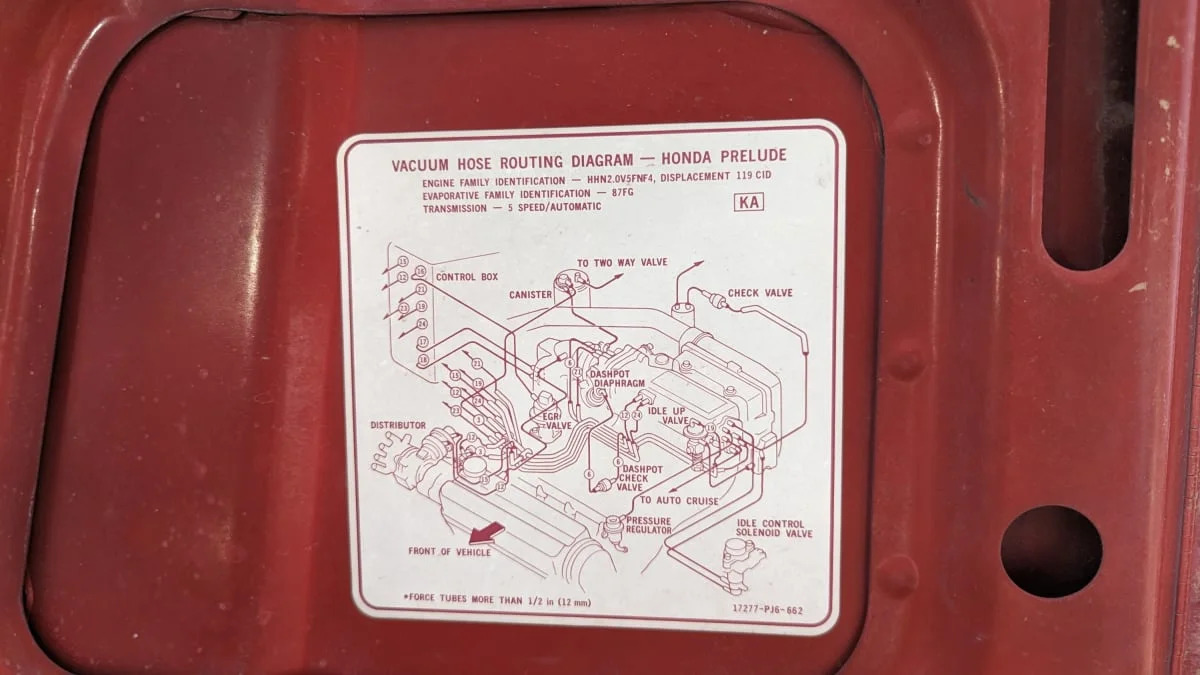 Contrast that diagram with this one for the dual-carb-equipped 1988 Accord (the base 1987 Prelude’s 1.8-liter engine used a similar system). Which one would you rather have when the engine developed a misfire or wouldn’t pass a smog check?