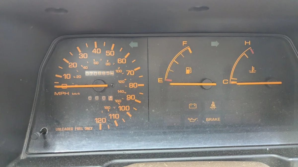 There’s no air conditioning, and an affordable 1990s cassette deck was installed in place of what I’ll bet was a radio-delete blockoff plate.