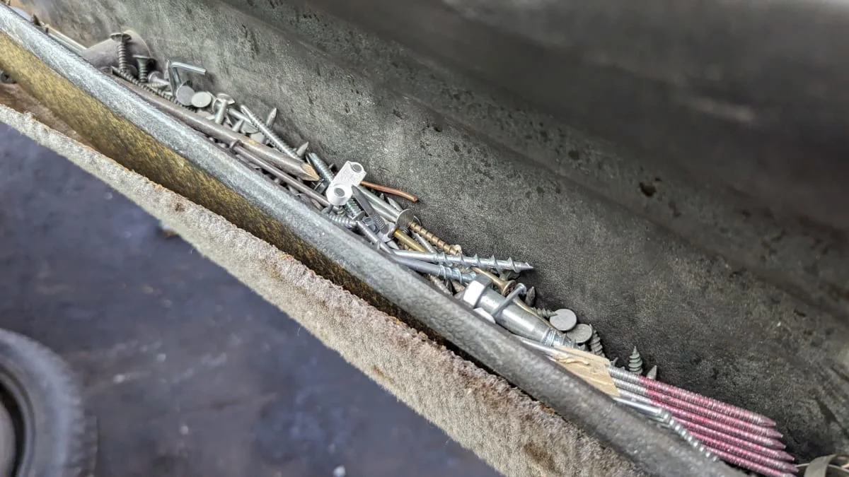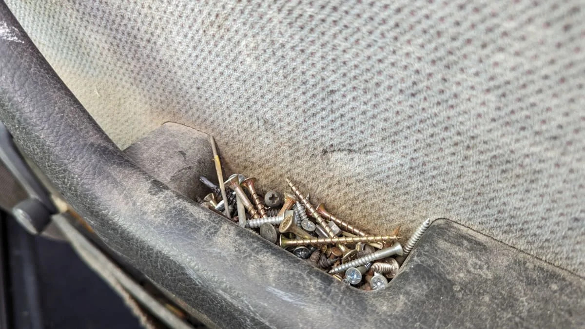 The floors and door pockets are full of construction hardware and the interior is coated with sheetrock dust, so I think this Accord was used to haul crews to work sites for a decade or two. There’s a half-million-mile Civic hatchback of the same era that a Denver painting contractor still uses for that purpose; perhaps this Accord was owned by the same outfit.