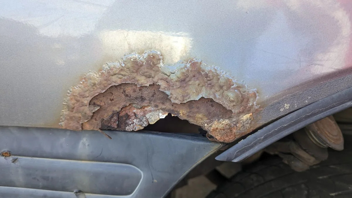 These cars were more vulnerable than most to damage from the Rust Monster, and this one shows holes in the usual spots.