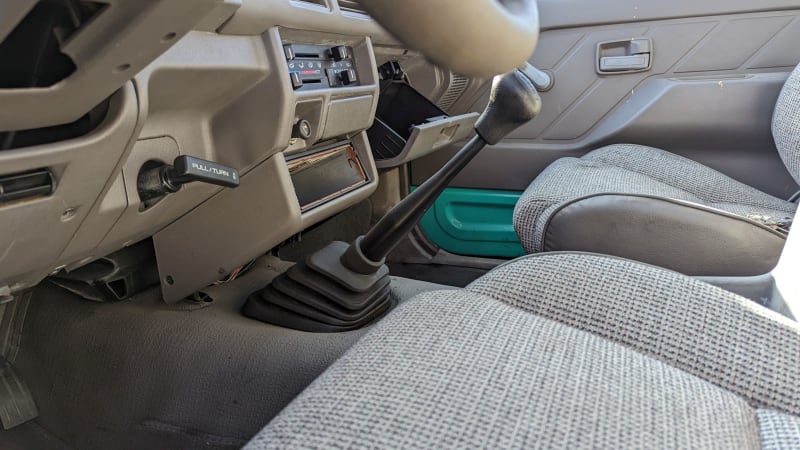 The only transmission in the Amigo for the first couple of years was a five-speed manual, which is in this truck. That three-pedal setup kept the Amigo’s appeal limited to the small group of American drivers willing to work a clutch. The optional automatic became available for 1992. You could get the Amigo with four-wheel drive, but this one is the cheaper rear-wheel-drive version.