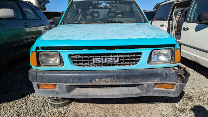 After some success providing General Motors with small Faster pickups badged as Chevrolet LUVs in North America (plus some Chevette-related Geminis labeled “Buick/Opel by Isuzu,” which confused everybody), Isuzu began selling vehicles under its own name here in the early 1980s. At first, we just got I-Mark subcompacts and P’up pickups. Then the Trooper SUV appeared in 1984, and Isuzu joined the suburban-commuter truck game in a big way. For the 1989 model year, the little Amigo three-door convertible SUV landed on our shores. Here’s one of those early trucks, found in still-rad condition in a San Francisco Bay Area self-service yard recently.