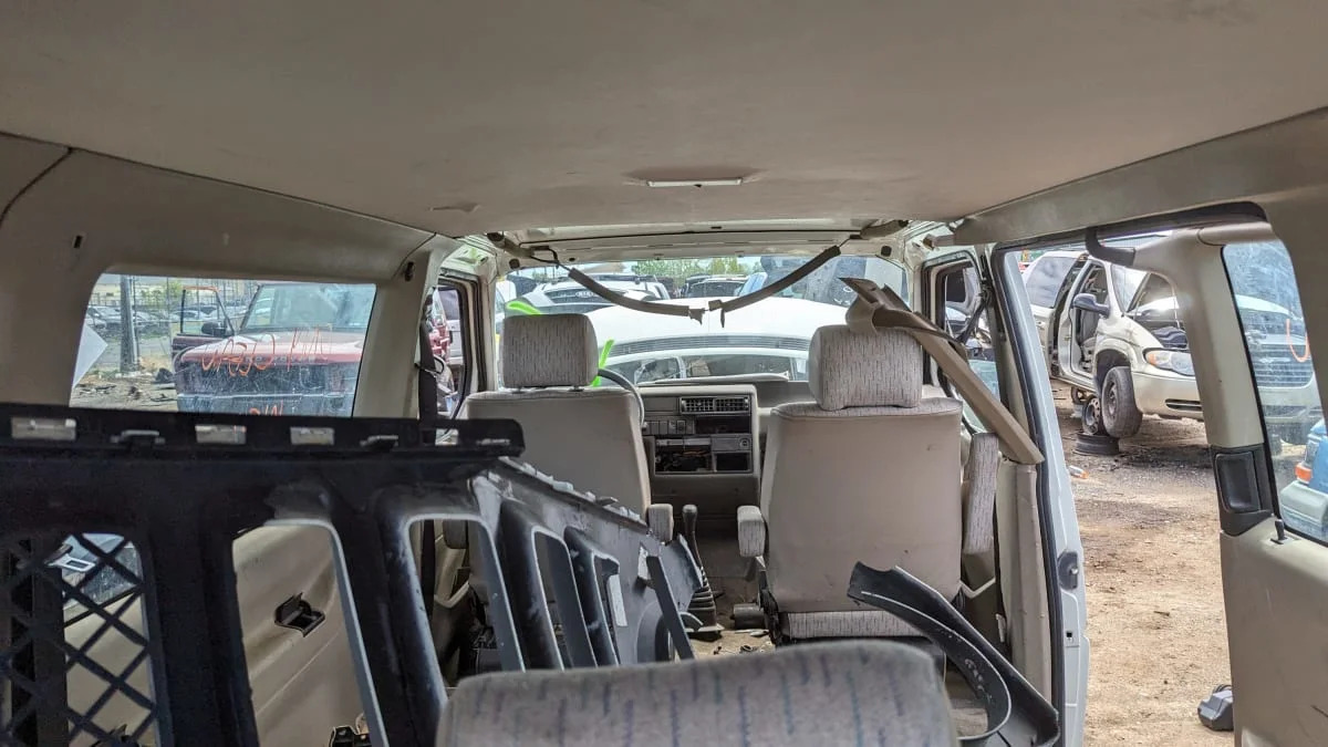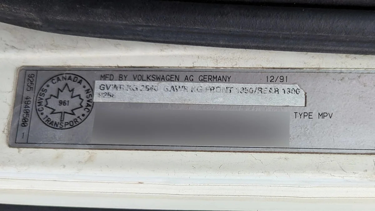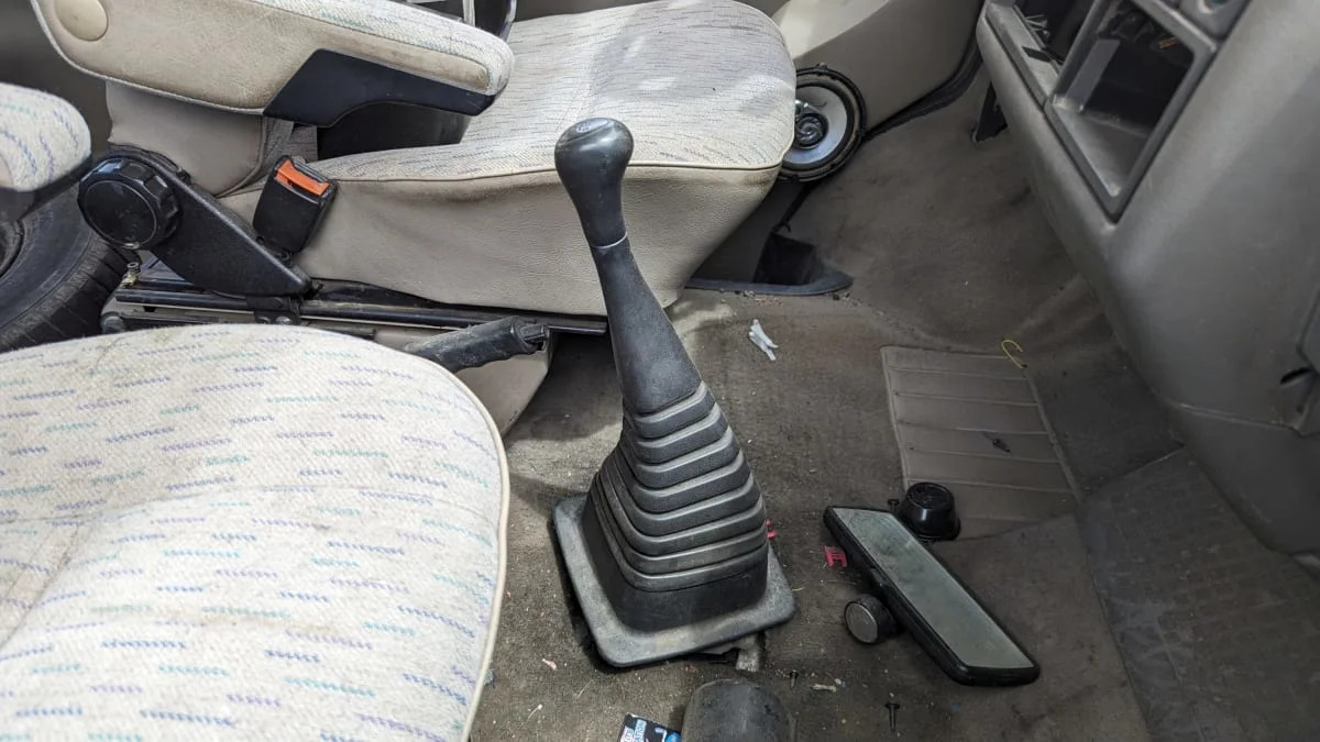 The instrument cluster was gone, so I didn’t see the telltale km/h speedometer, but the transmission type suggested that the original buyer of this van purchased it across the border. EuroVans with five-speed manual transmissions were sold in the United States, but few bought them.