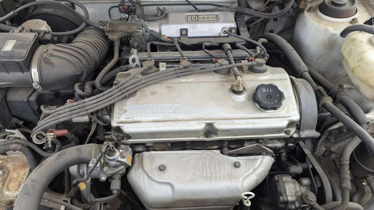 The engine is the ubiquitous 1.8-liter Mitsubishi 4G64 SOHC four-cylinder.
