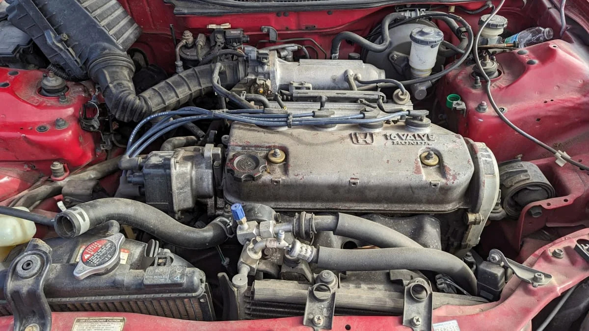 For 1993, the base del Sol got the very reliable but not-so-powerful 1.5-liter engine, rated at 102 horsepower and 98 pound feet. That’s what we have here, and it’s very unlikely that any junkyard shopper will be buying such a commonplace plant. The 1993 del Sol Si got a VTEC-equipped 1.6 with 125 horsepower and 106 pound-feet, and that engine remains fairly desirable in the eyes of Honda builders.