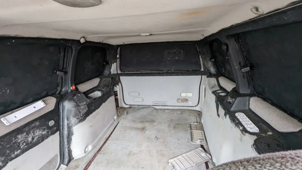 The rear seats are long gone, so this van probably hauled cargo for much of its long life.