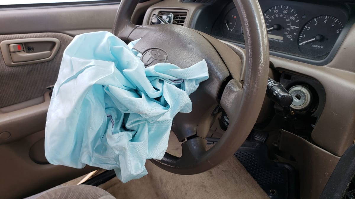 The car is in this place because it got into a nasty right-front impact. The suspension seems fine, but all that body damage plus popped airbags reduced its already low resale value to the worth of its scrap metal.