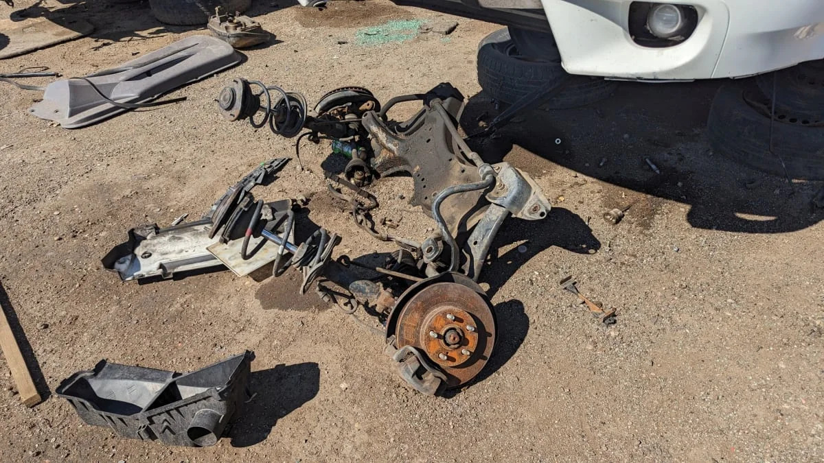 A junkyard shopper went to the trouble of removing the entire front subframe, then left it in the dirt. Perhaps they wanted to get to the transmission, then had a change of heart.