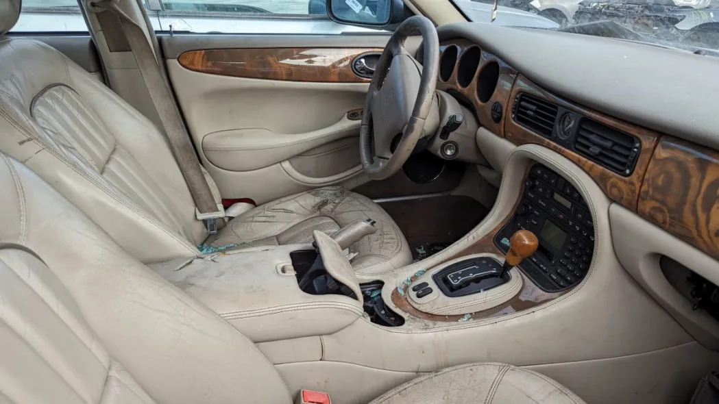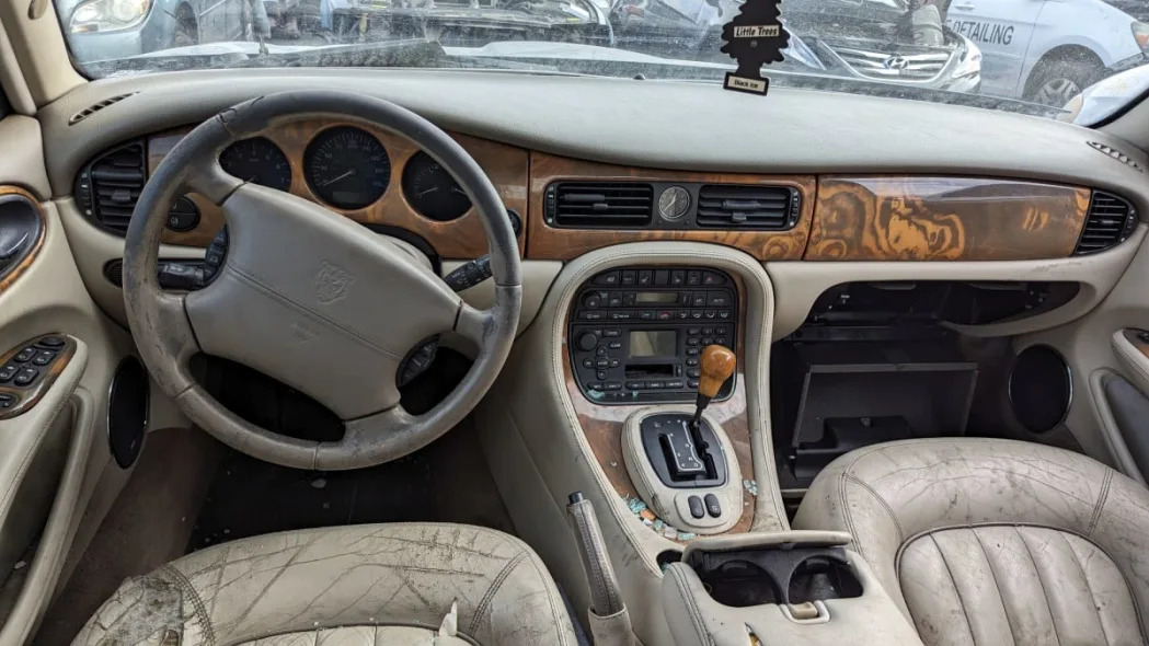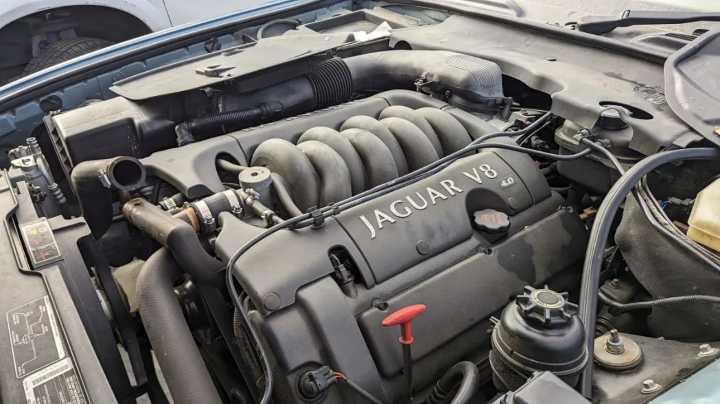 After Ford bought Jaguar in 1989, the bosses in Dearborn finally got their hands on a storied luxury brand that would be taken more seriously than Lincoln outside of North America. A fresh infusion of dollars worked wonders to improve the quality of Jaguar’s engineering and assembly, and development of a modern DOHC V8 engine immediately took a high priority. That engine made its debut in the 1997 Jaguar XK8, then went into the engine compartment of the very first production Jaguar sedan to get factory V8 power: the XJ8. Today’s Junkyard Gem is one of that first generation of XJ8, found crashed in a Colorado self-service boneyard.