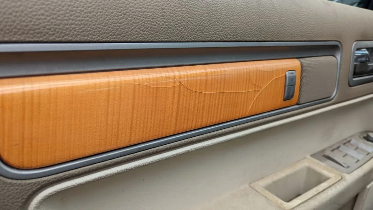 The maple in this car has held up reasonably well, by the standards of car-interior wood at age 17.