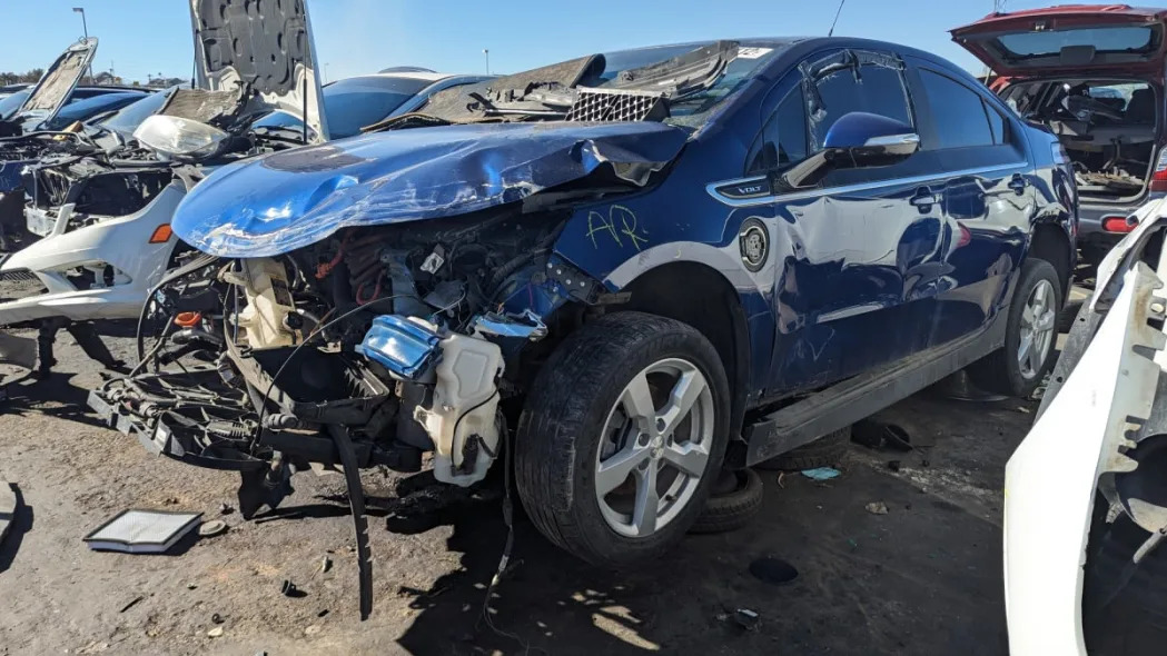 I was hoping to find a non-crashed Volt to document for this series, but 8- to 11-year-old cars are pretty young to show up in these yards, and Volt owners tend to love their rides enough to maintain them correctly. This one got mashed hard in the front, but at least it’s recognizable.
