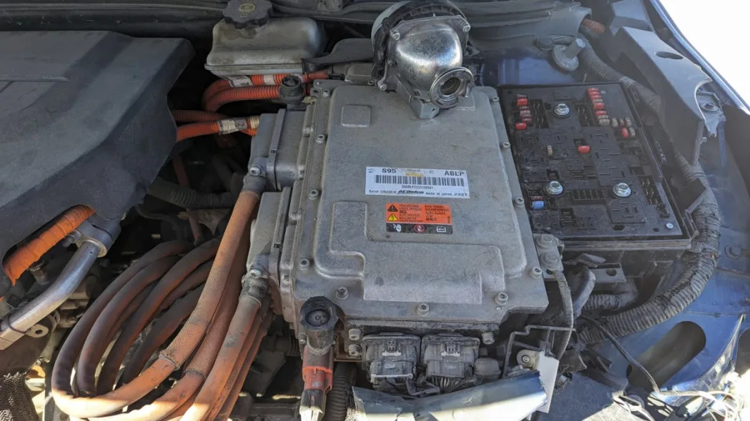 The main battery is gone (self-service junkyards aren’t about to let customers go jabbing screwdrivers into hot high-voltage components, plus hybrid and EV batteries are worth real money), but the controlling circuitry is still present.