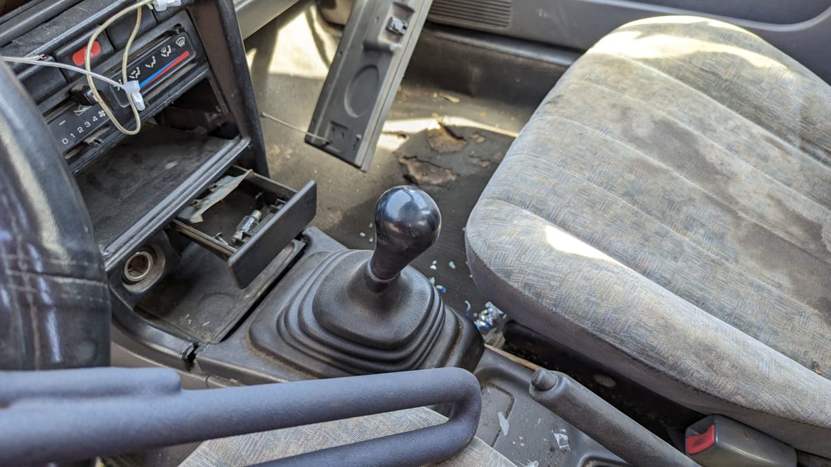 The dash assembly has been pasted together from at least three, and maybe more, cars. This makes me think that the VIN is the one from whatever random Juarez cab donated the upper dash components. The entire car seems to be the Tsuru version of the famous Johnny Cash song. Could be a ’92, could be a ’17, probably a bit of every year in between. The steering-wheel lock suggests that it got towed away for having expired Mexican plates, borrowed Colorado plates, or no plates at all.