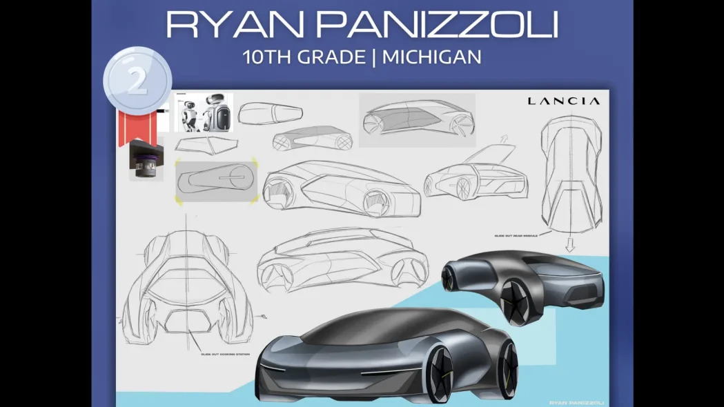 Stellantis describes is annual Drive for Design contest as “an opportunity for high school students to win fabulous prizes while learning about exciting career opportunities in automotive design.” Winners not only get gear like a Wacom MobileStudio Pro 16, they’re eligible for summer internships in one of Stellantis’ design studios. For the last two years of the contest, Rocco Morales won first prize — last year with his Ram Stadion concept, and in 2022 with his Chrysler Helios concept — and that was after coming second in 2021 with his Jeep Crazy Horse concept. With Morales having graduated, aging out of the entry pool, Rohan Sieber could be the next in the repeat winner’s circle. Sieber, a junior in Portola, California, won the 2024 Drive for Design challenge. Students were asked to create a fresh concept for any of Stellantis’ global brands. Everyone who made the podium chose to create a fictional Lancia.