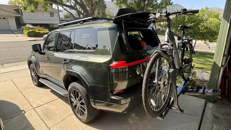 … I plugged my Yakima StageTwo into the hitch, and all of a sudden I didn’t need to angle/muscle down the rack when it was loaded with my jumbo e-bike in order to access the cargo area. I didn’t need to lower the rack from its upright stowed position, either. Brilliant!