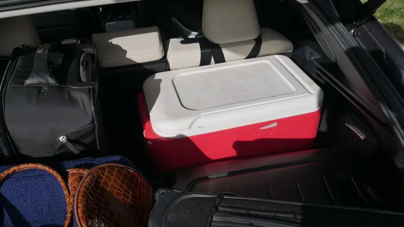 Let’s talk about the cargo cover. It is a giant cartridge-style cover and it does take up quite a bit of space. There’s no place to store it under the floor as in some SUVs nor was there a great place to store it atop the bags while testing, so I tested with and without the cover. (It should be noted that the Lexus NX has a different design and it’s superior, as I discovered in the NX luggage test)