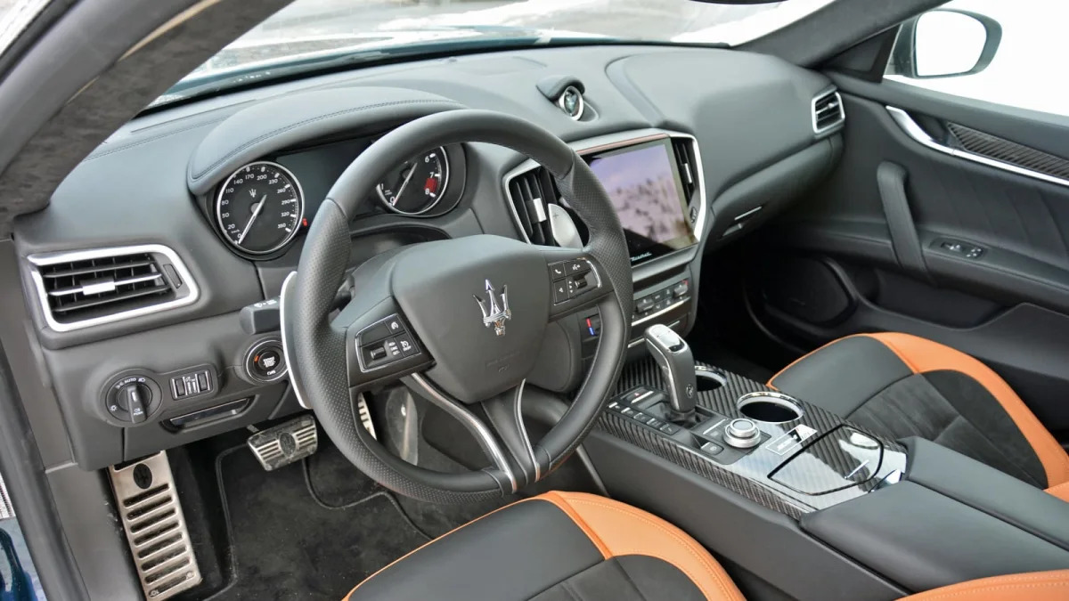 Inside, the 334 Ultima comes with two-tone Pale Terracotta and black upholstery that echoes some of Maserati’s classic models without going full-on retro. It’s a distinctive look the Ghibli wears well.