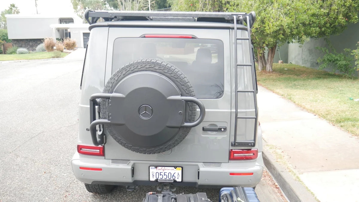 To get up there, there’s a handy ladder. It’s a bit tough to get to it, since the grippy step bits on the bumper are not in line with the ladder. The G 550 is also rather high off the ground.