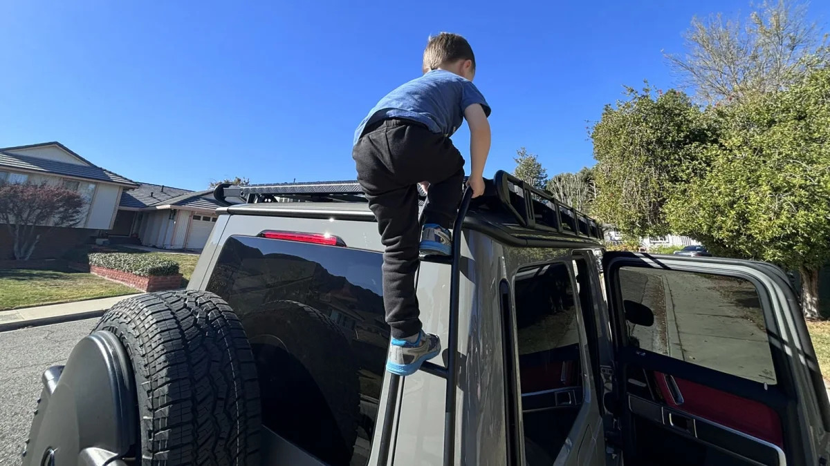 The manual insists that children not be left unattended near the vehicle as they may climb the ladder and fall. Nothing about letting them climb up after doing a luggage test.