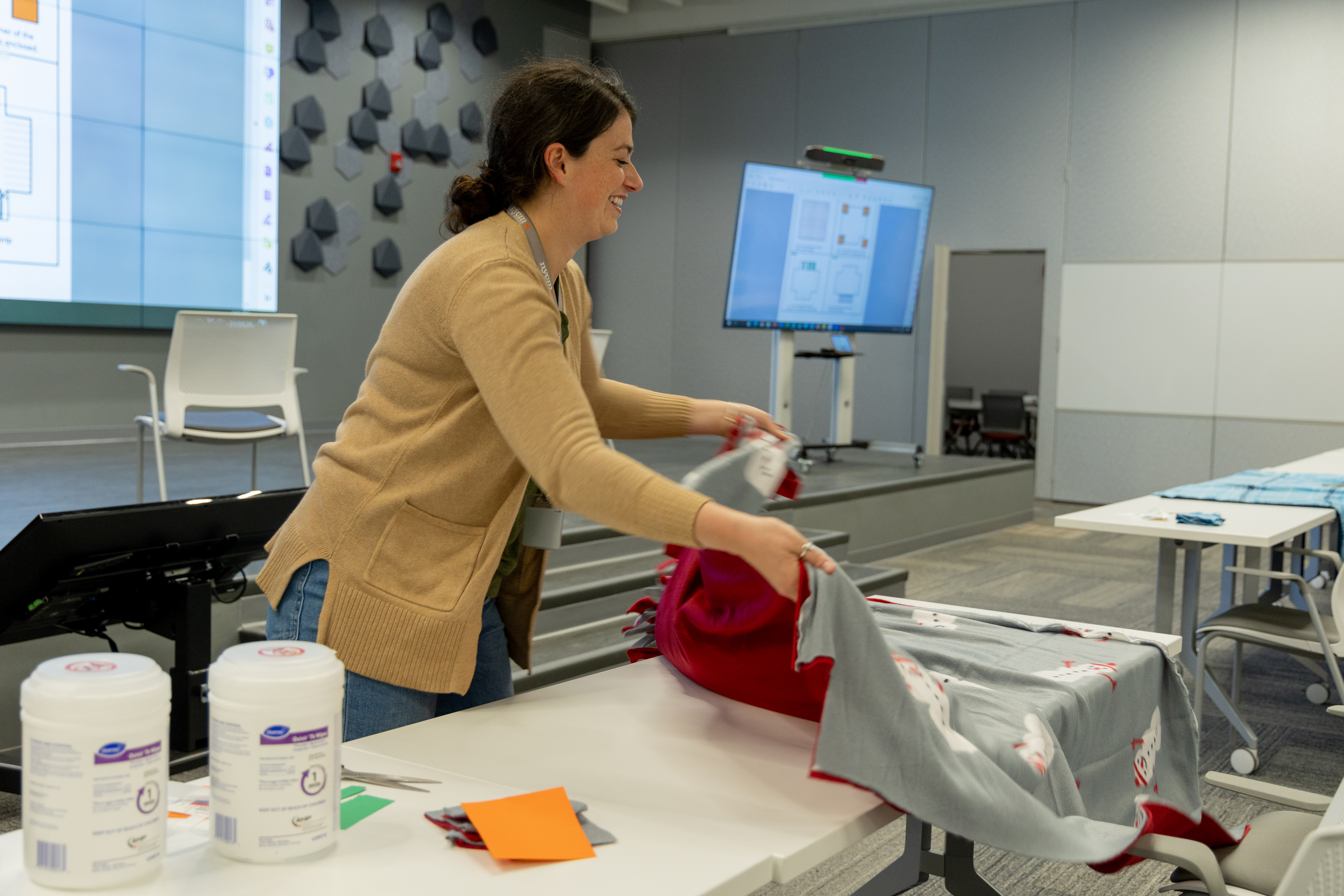 The CX volunteer committee made one blanket for every care package, which also