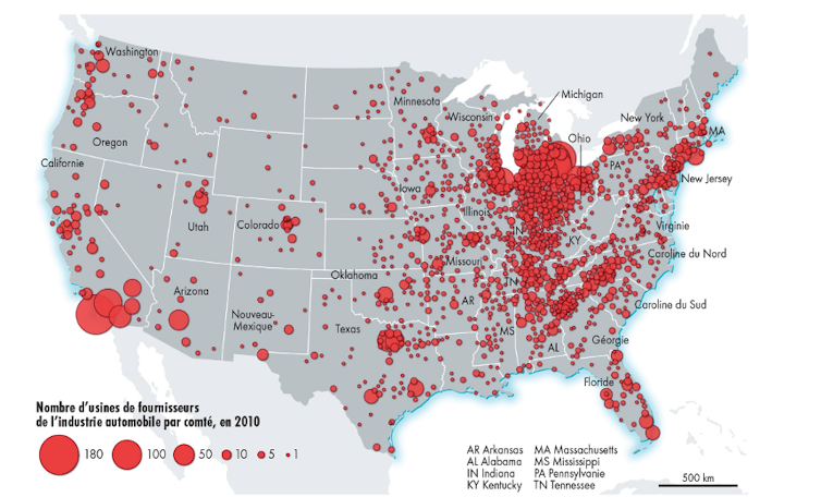 Today, the American automotive industry operates through a network of major economic hubs, each playing a pivotal role in production and innovation. These hubs are supported by a dense web of suppliers and subcontractors, forming a complex and interdependent supply chain critical to the industry’s success.