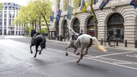 Pictures and videos shared widely across social media showed two of the horses — one white, one black — running at speed down Aldwych, in between London’s historic financial center and the busy West End theater district.