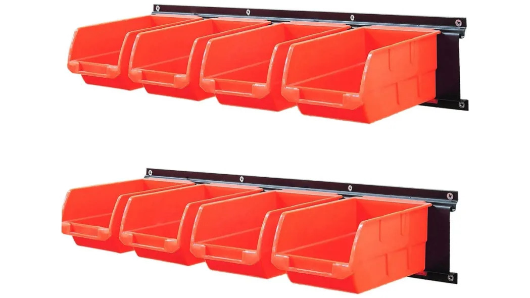 The Wallmaster 8-bin storage rack is great for storing small tools and other items. The product includes two rails and eight drawers. Each drawer is able to hold up to 22 pounds. Installation is simple, you just have to drill holes for the rack to fit on the wall, and the drawers easily snap on.