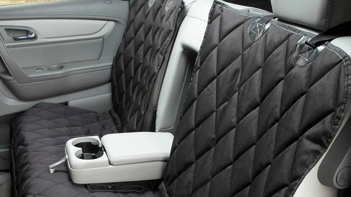 The 4Knines Dog Seat Cover has a patented split design that allows the center armrest to fold down. This cover has a seven-layer construction that is waterproof with a non-slip bottom layer. It also comes with velcro seat belt openings, sturdy seat anchors and UV-coated straps.