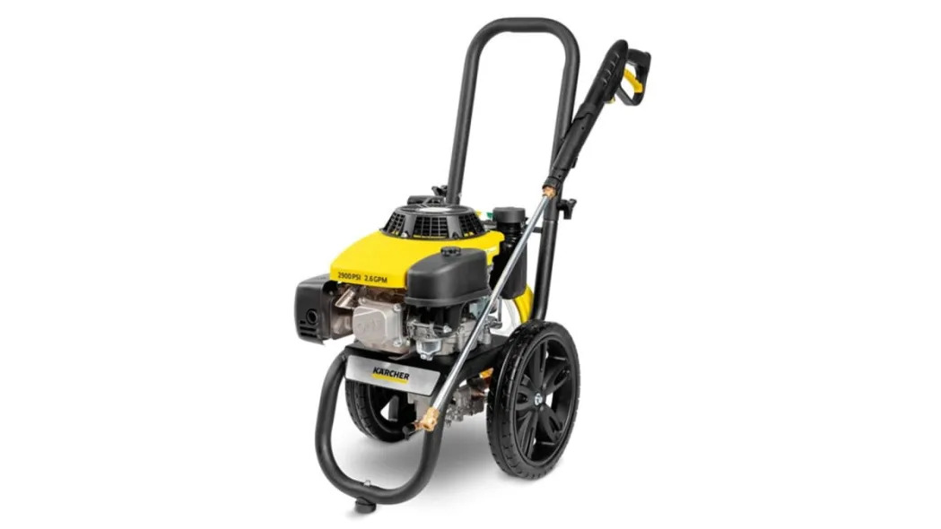 The Karcher Axial Pump Gas Power Pressure Washer can generate up to 2,900 PSI and has a flow rate of 2.6 gallons per minute. It has a 196cc engine, an M22 trigger gun, a 25-foot hose and a built-in detergent tank. A 3-year warranty is included with this purchase.