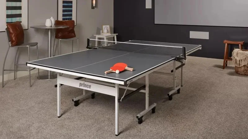 Another solid ping pong table for sale at Dick’s, this one from Prince. It’s an indoor table that folds for more compact storage, playback, and easier transport. It includes a pro net and clip set and is lightweight. However, one reviewer recommends having extra help when assembling due to the size of the table.
