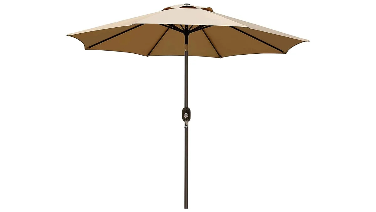 Lounging outside in the heat is great, but lounging outside with the sun’s harmful UV rays beating down onto your skin can be terrible. A good old fashioned umbrella is a great solution to this problem and this one is as good as any. It’s got a 9 foot diameter and is made of 100% polyester which means it’s waterproof, easy to clean and of course it’s UV resistant. It utilizes a crank opening system and also features a push button for tilting. Need a base for it too? Check this one out.