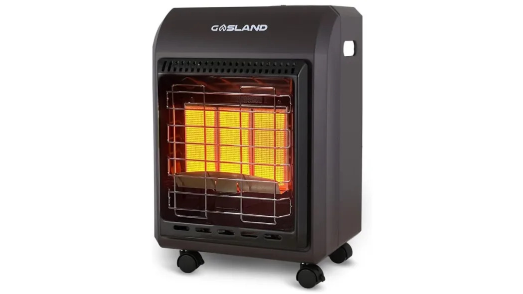 The GASLAND Propane Radiant Heater has 18,000 BTU of power a heating coverage range up to 450 Sq. ft. It has three adjustable heating modes to customize your heat output. It also comes with lockable wheels, an Oxygen Depletion Sensor and tip-over protection.