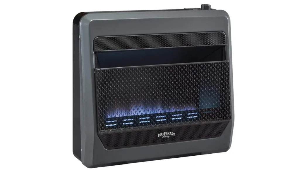 This Bluegrass Living Ventless Propane Gas Blue Flame Space Heater operates at 30,000 BTU of power and has a massive heating coverage of 1,400 ASq. ft. Not only does it have an Oxygen Depletion Sensor that shuts down when oxygen levels are low, but it also has carbon monoxide detection and shutdown as well. It also includes a 1-year limited warranty.