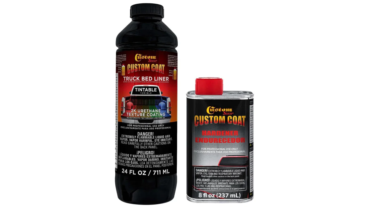 This Custom Coat Urethane Spray-On Truck Bed Liner Kit offers great adhesion to your truck beds surface and is tintable with 50 different colors to choose from. This coating is waterproof and will protect your truck bed from heat and UV rays. This product includes a 21 fl oz. can of tintable truck liner base and an 8 fl oz. can of Custom Coat hardener.